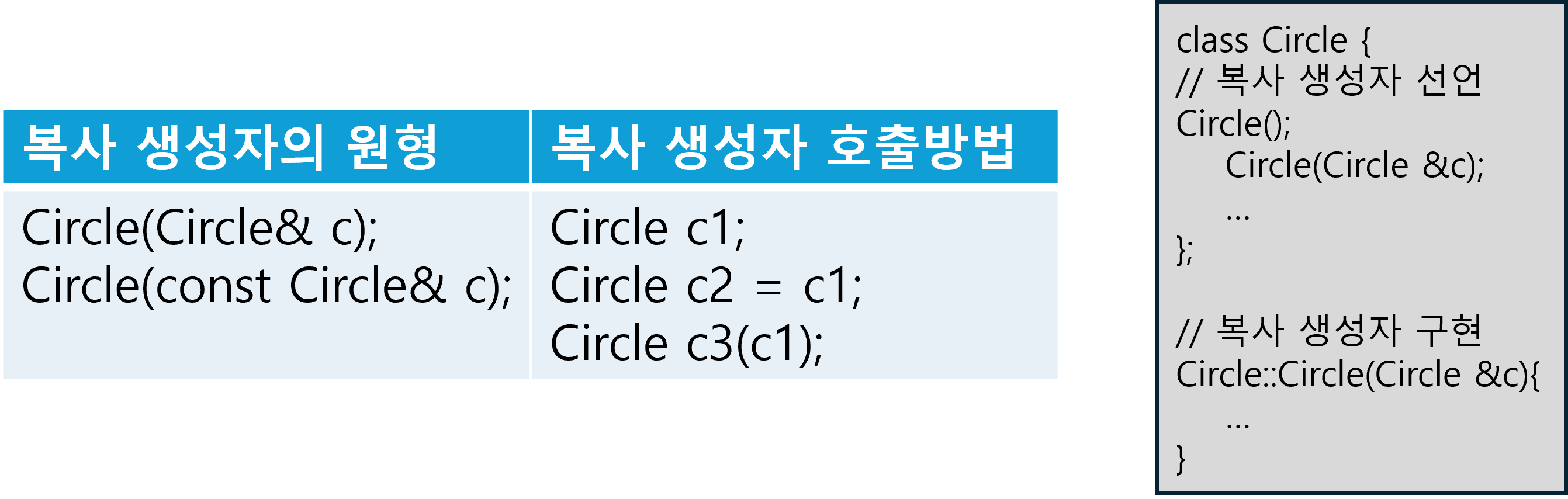 - 객체의 복사 생성시 호출되는 특별한 생성자