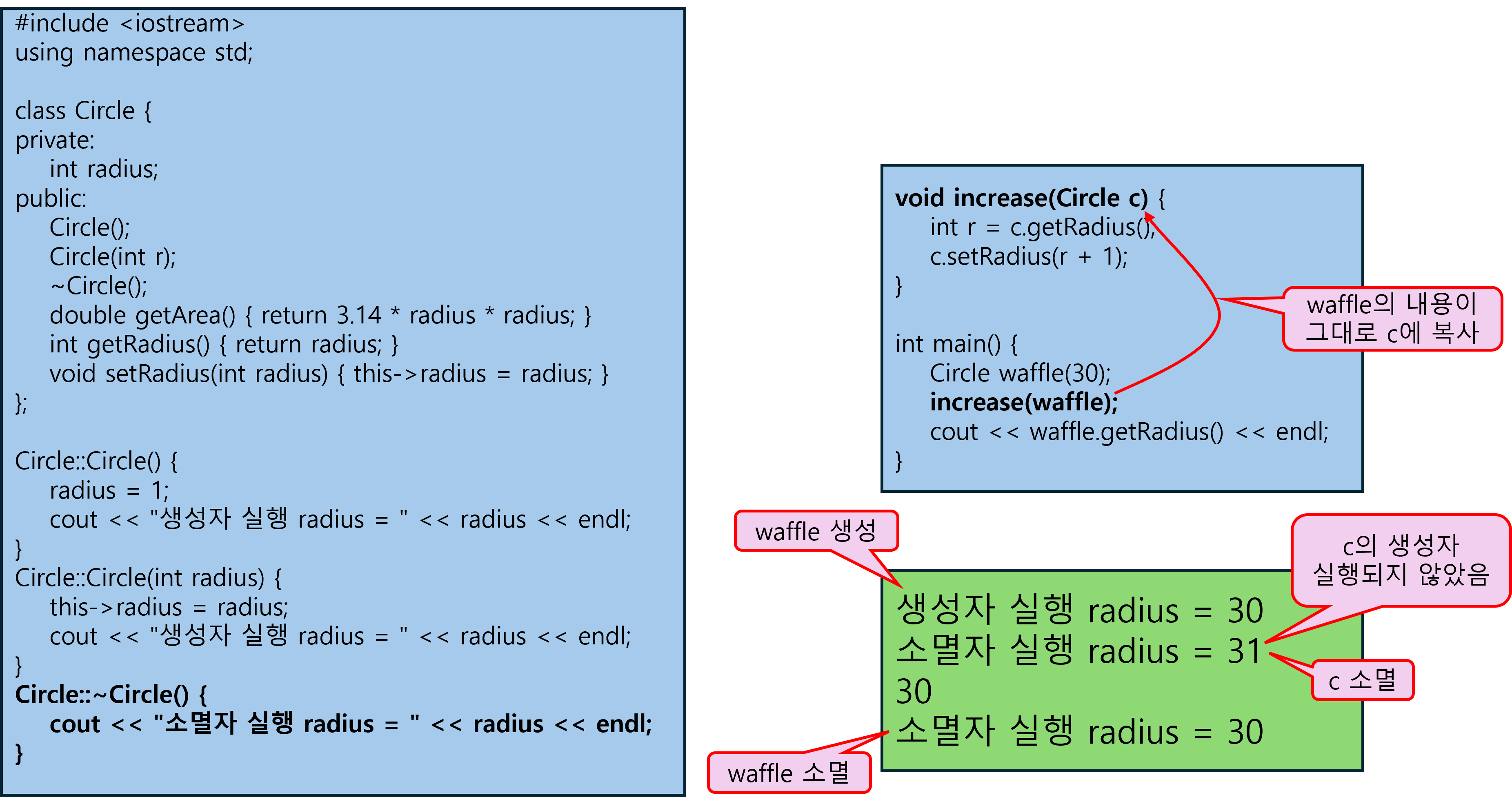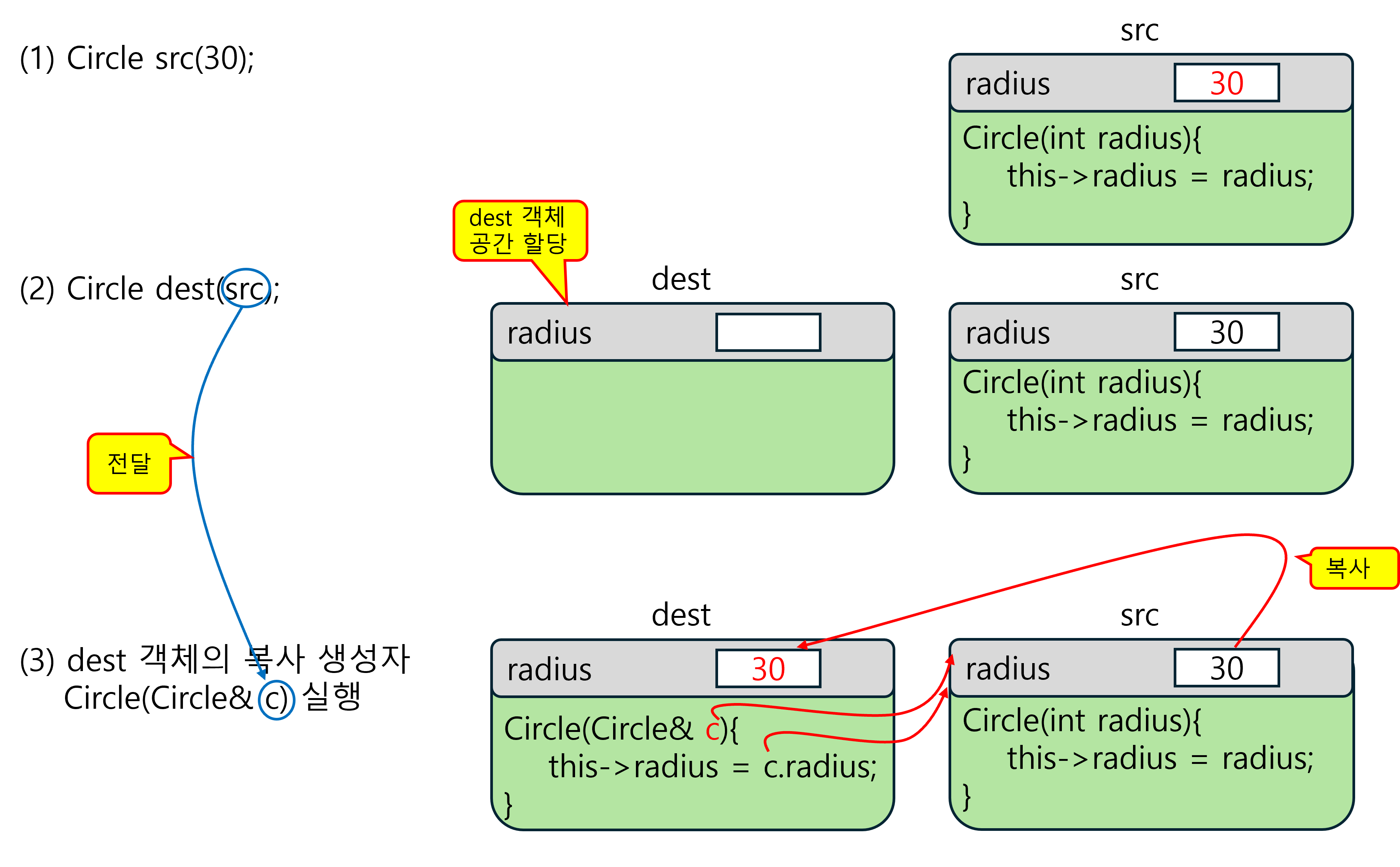 Circle src(30); // src 객체의 보통 생성자 호출