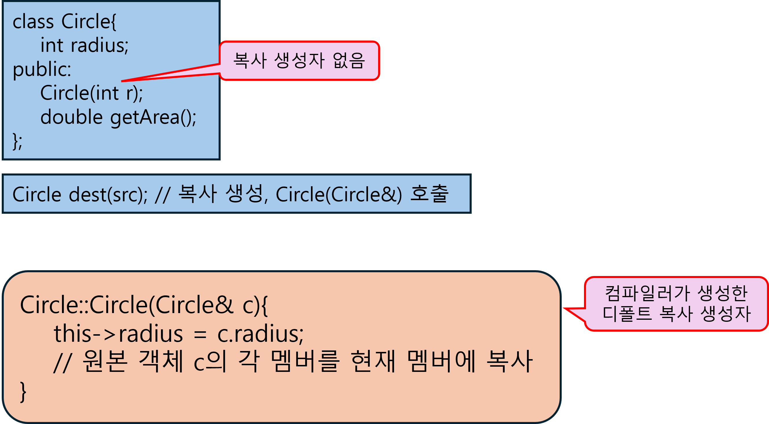 // dest 객체가 생성될 때 Circle(Circle& c)