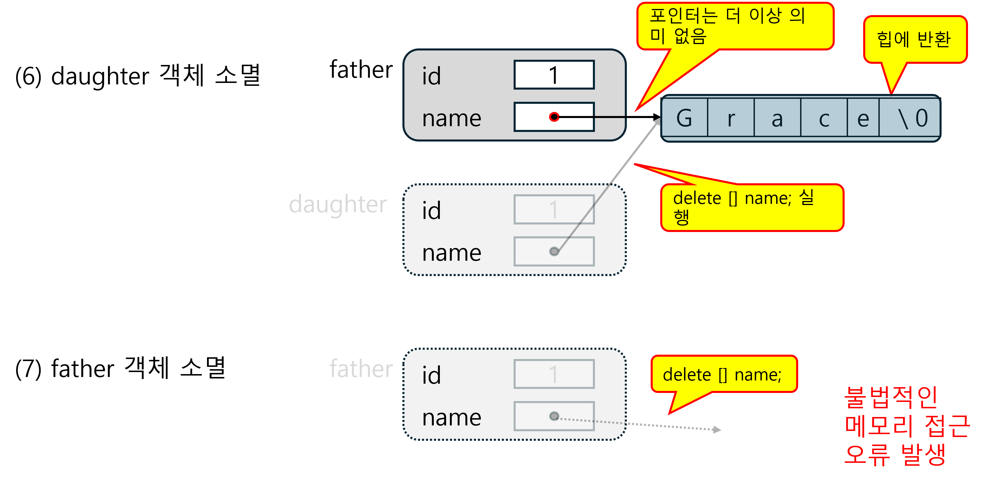 - 객체의 멤버 변수에 동적 메모리가 할당된 경우