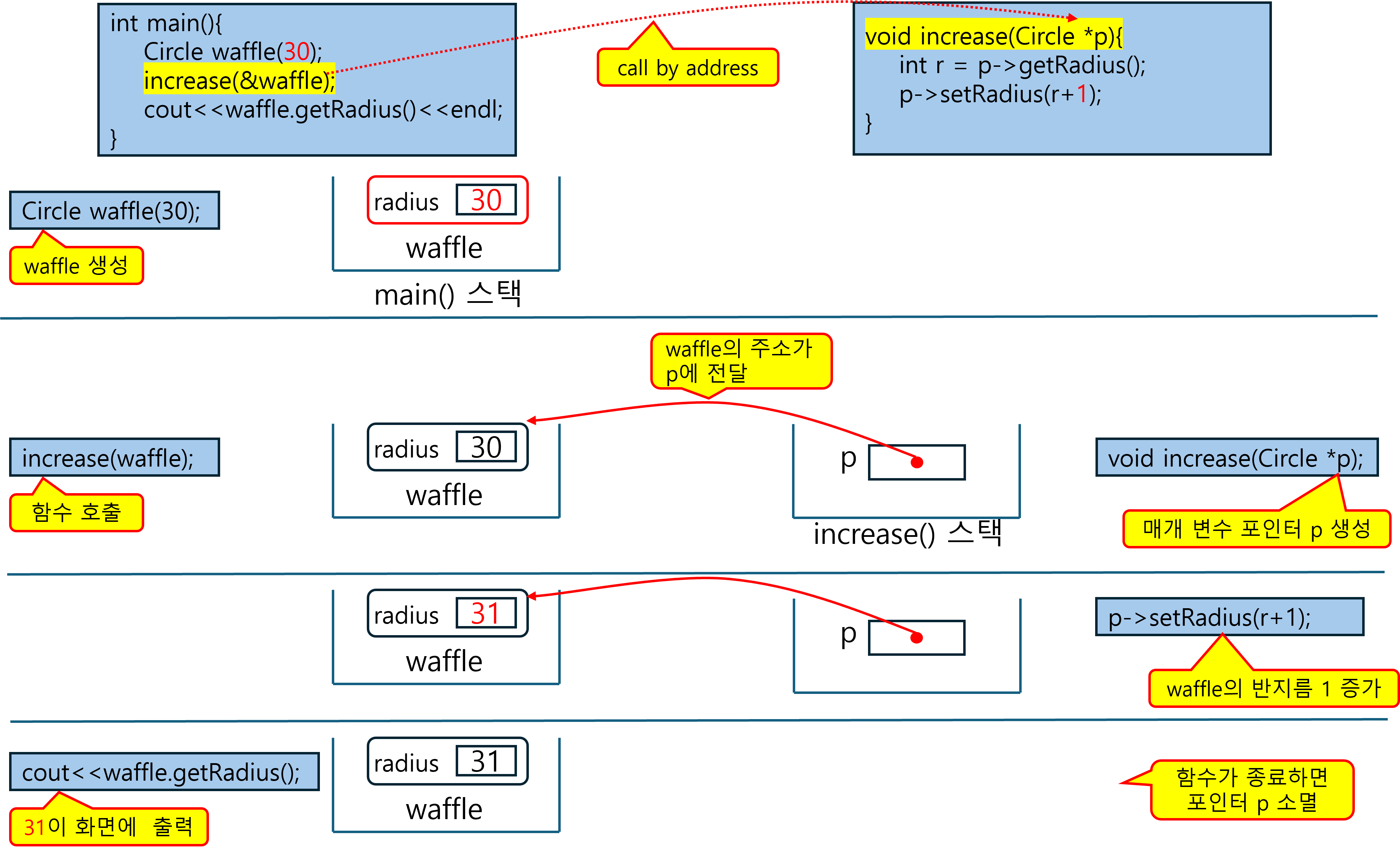 '주소에 의한 호출'로 함수가 호출되는 과정