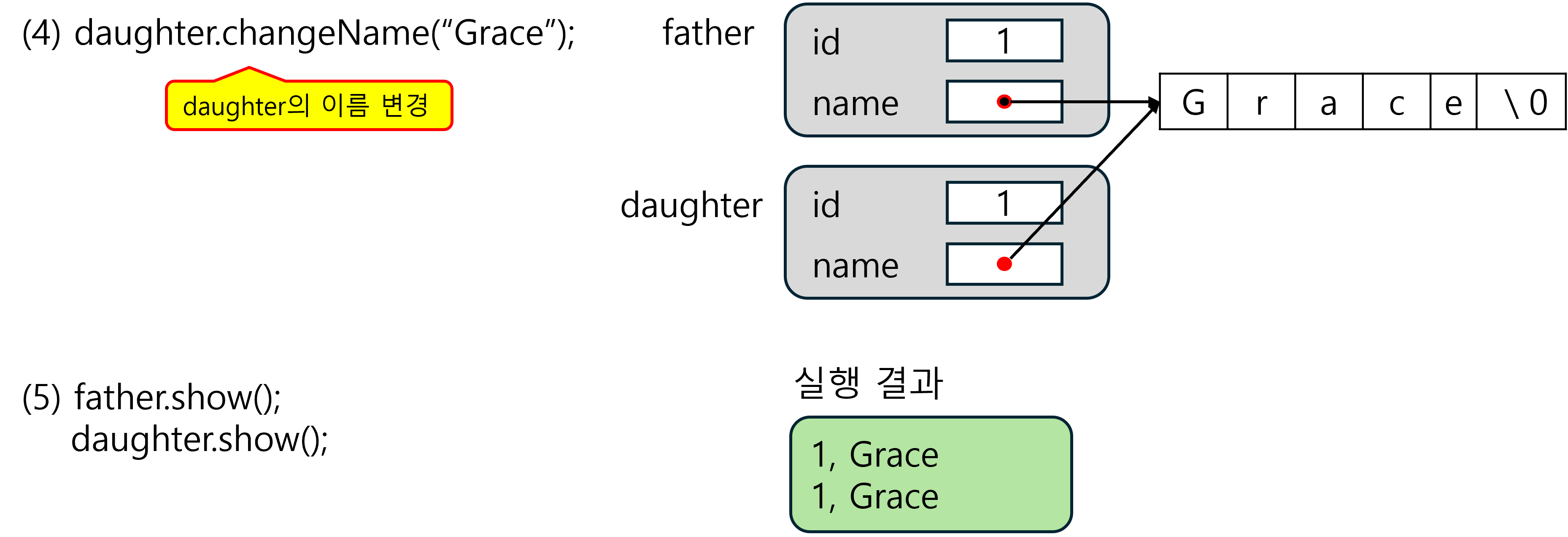 - 치환된 두 객체는 현재 내용물만 같을 뿐 독립적인 공간 유지