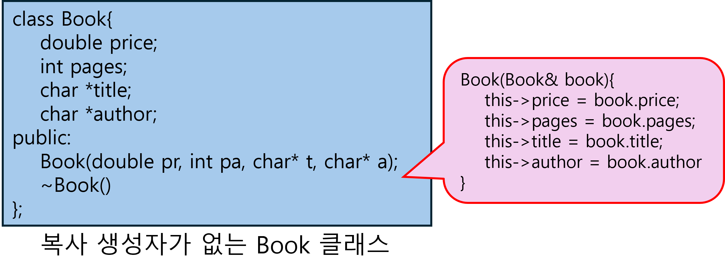 메모리 공유하는데 다른 곳에서 이 객체를 값에 의한 호출을 하면 그 함수가 끝났을 때, 소멸자가 호출되게 되버린다.