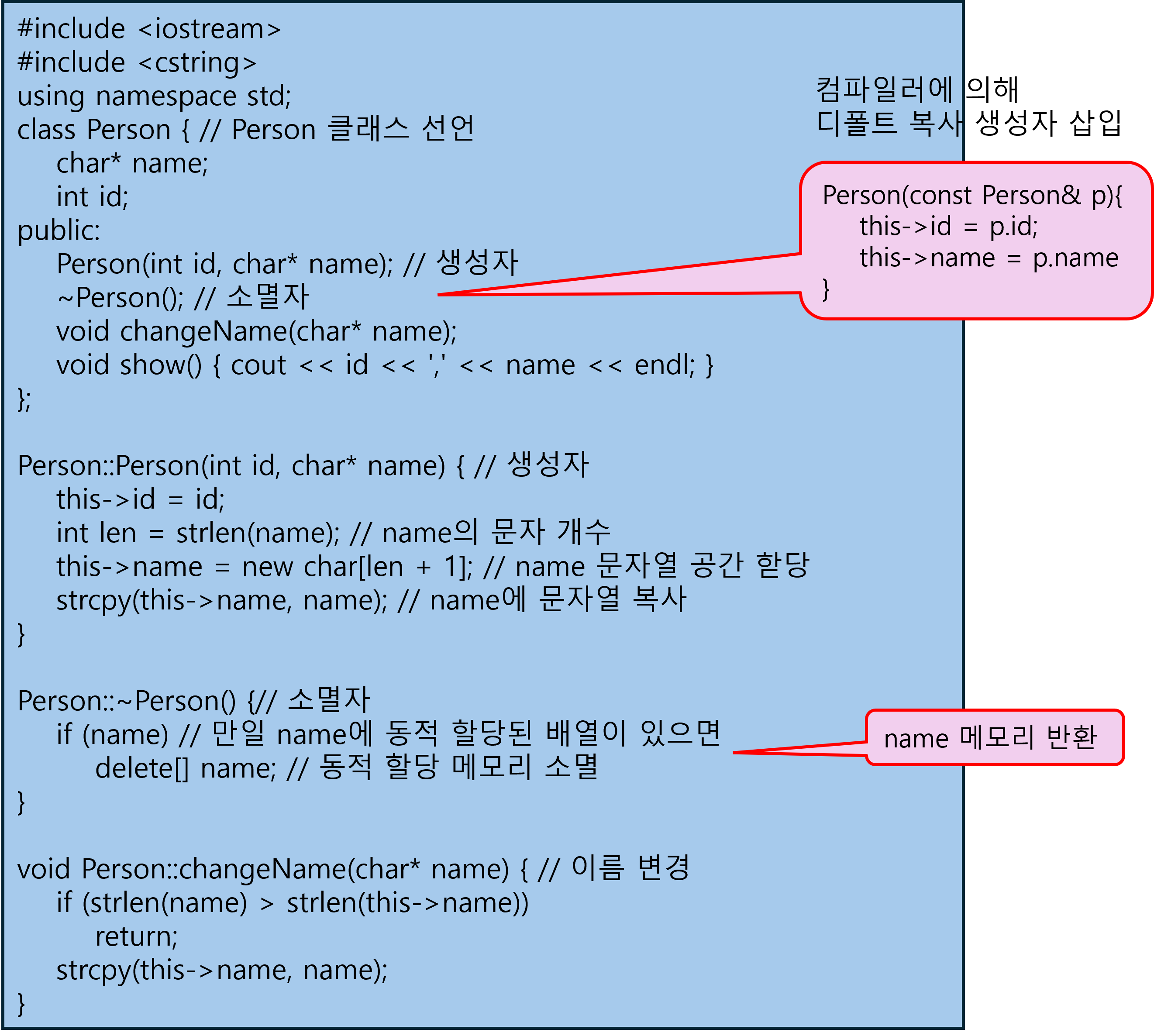 Person::Person(const Person& person) { // 복사 생성자